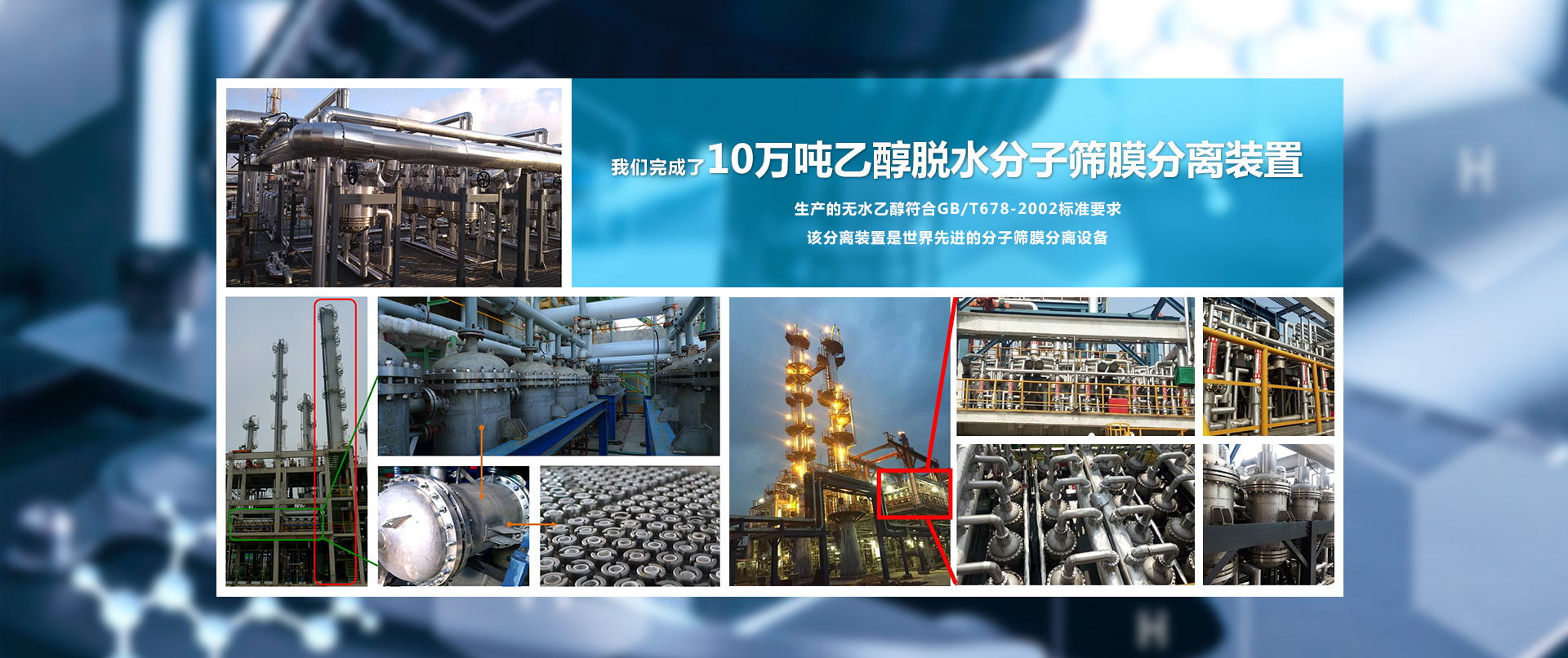 大連海斯特科技有限公司在索普集團(tuán)醋酸加氫制乙醇項目中完成3萬噸/年乙醇分子篩膜脫水項目。
